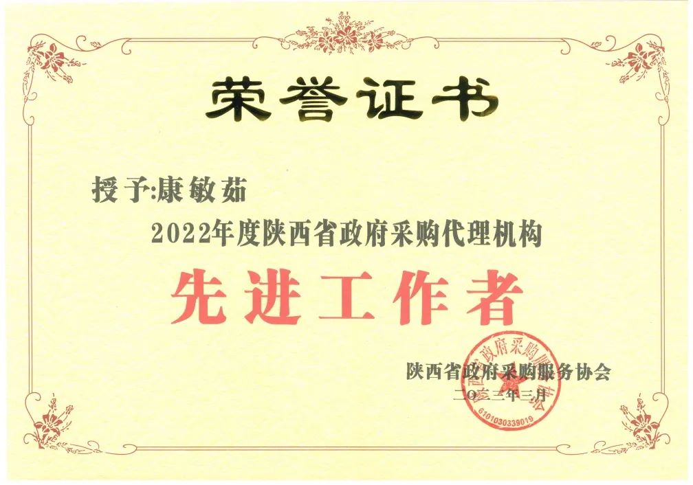 2022年度陜西省政府采購代理機構先進工作者