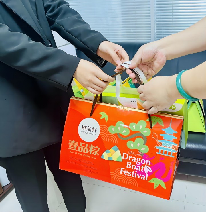 將一份份滿載著企業(yè)關(guān)懷的粽子禮盒送到員工手中