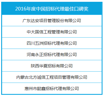 我公司獲得2016年度中國招標代理最佳口碑獎