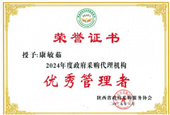 康敏茹同志榮獲“2024年度政府采購代理機構優秀管理者”稱號